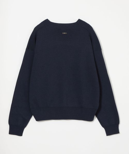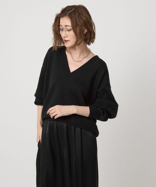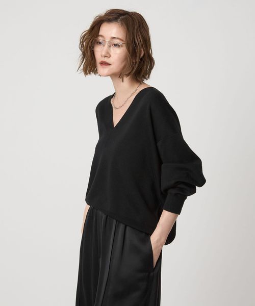デコルテをきれいに見せてくれる深めVネックのプルオーバーニット。