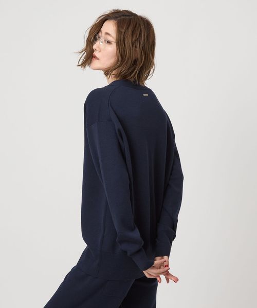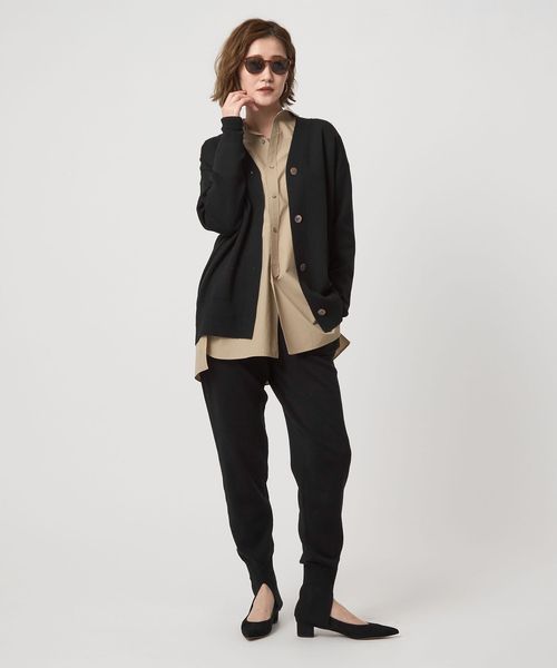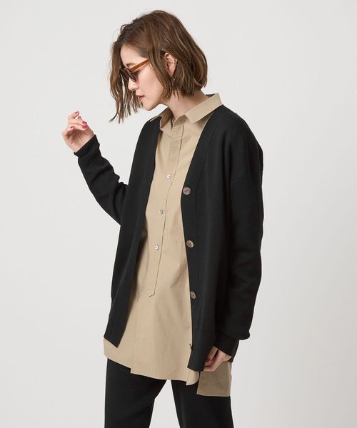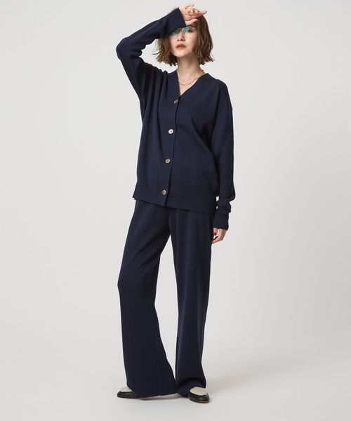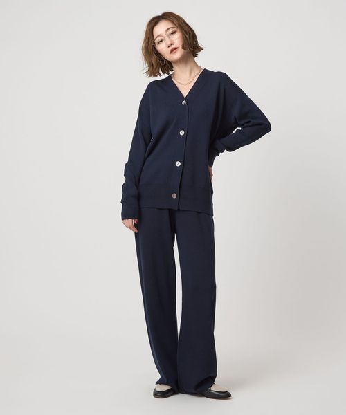 程よい厚みで軽い羽織として活躍するスムース編みのVネックカーディガン。