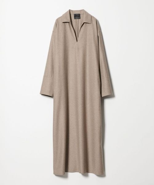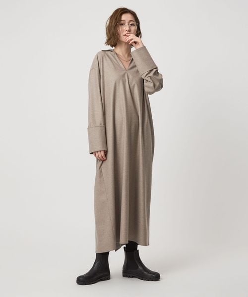 裾のドレープ感が上品なキーネックのロングワンピース。
