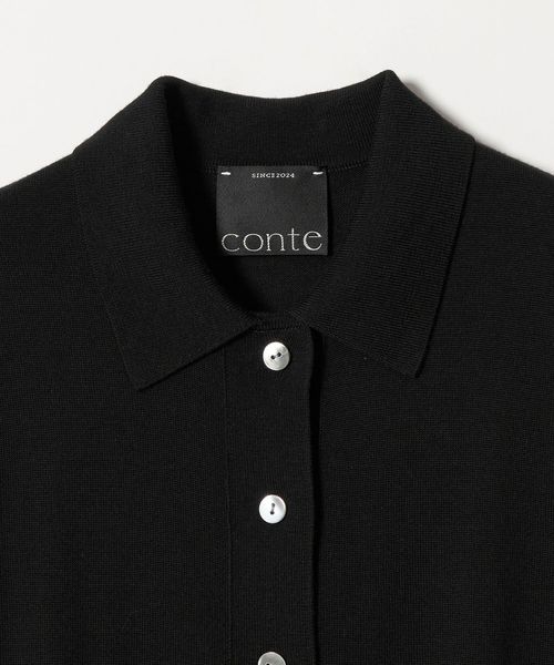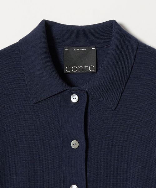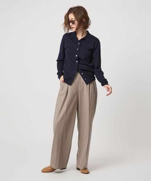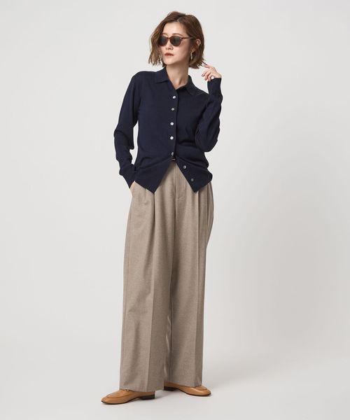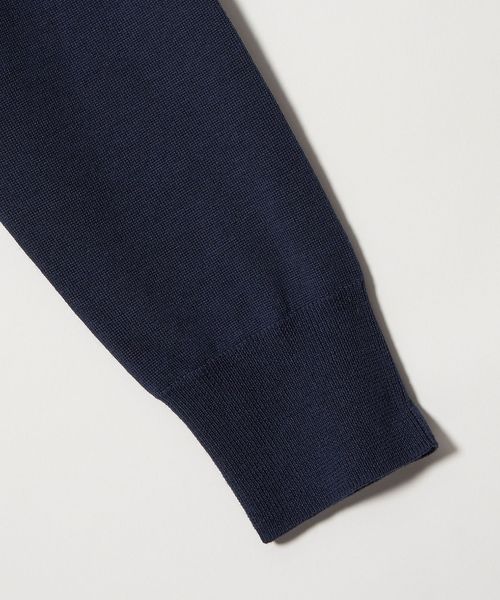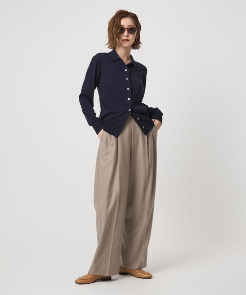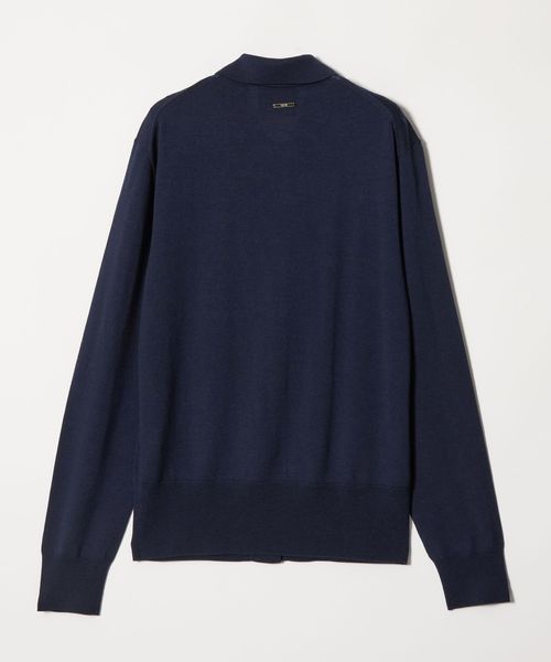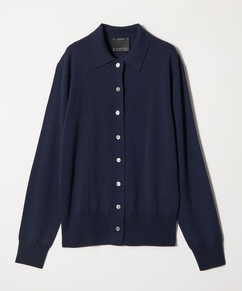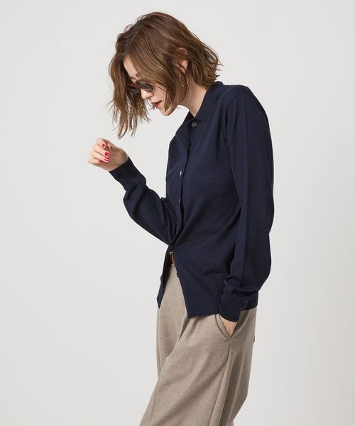 プルオーバーではない前開きデザインが羽織としても便利なポロカラーのカーディガン。