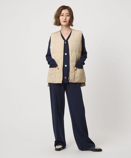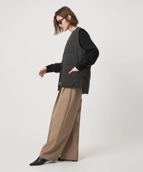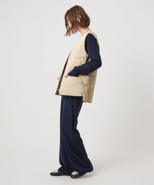 ダウンの分量を薄めにしてボリューム感を抑えることでインナーダウンとしてジャケットやコートの下に着用できるようにした1枚です。