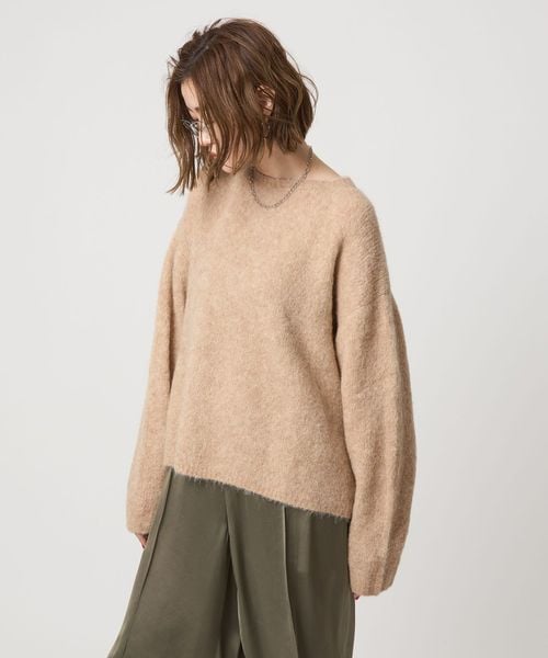 アルパカやウール、キャメル混のシャギー糸を使用した毛足のあるニット。
