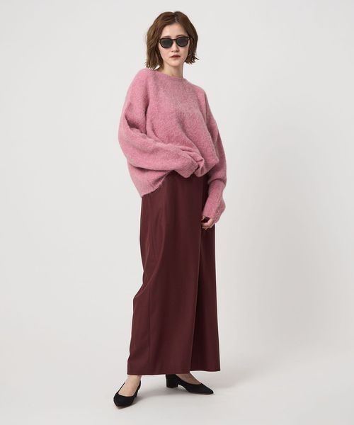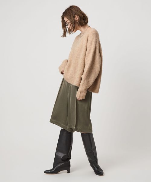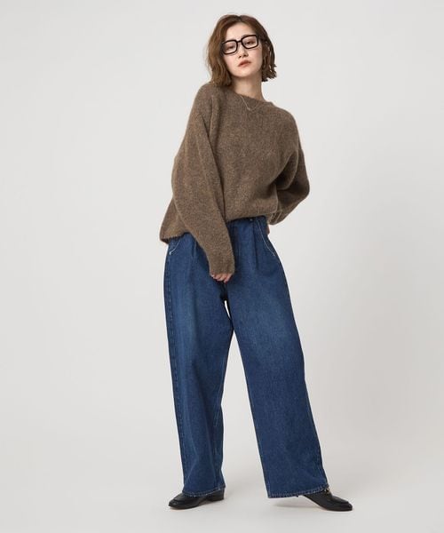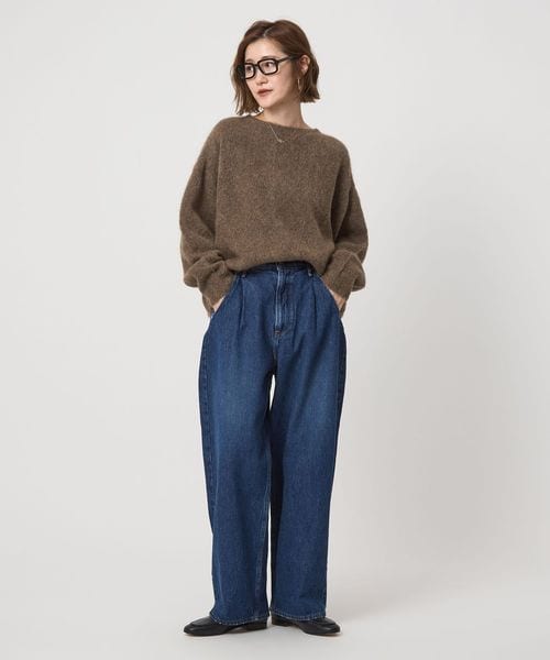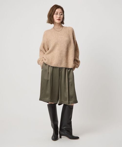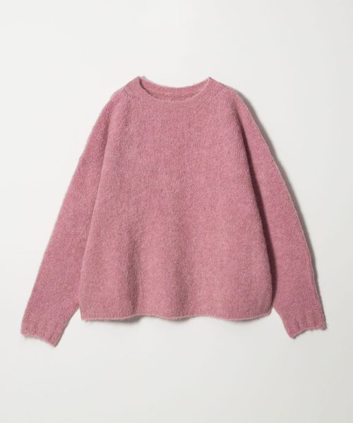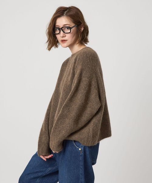 毛足のある表情がぬくもり感じるボクシーなシルエットのクルーネックニット。