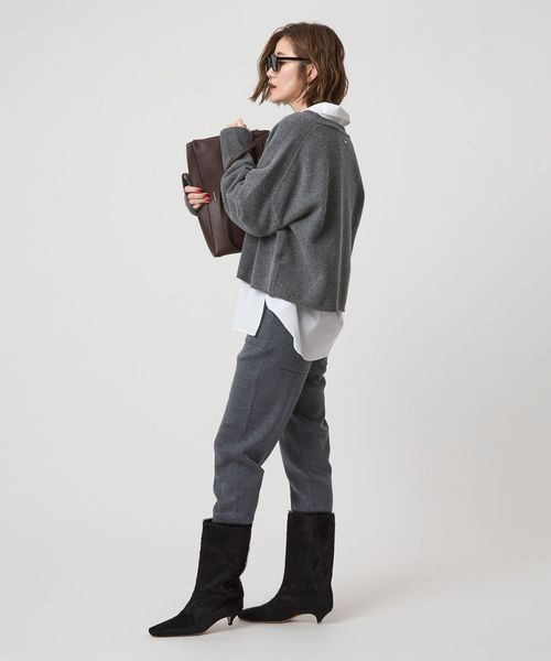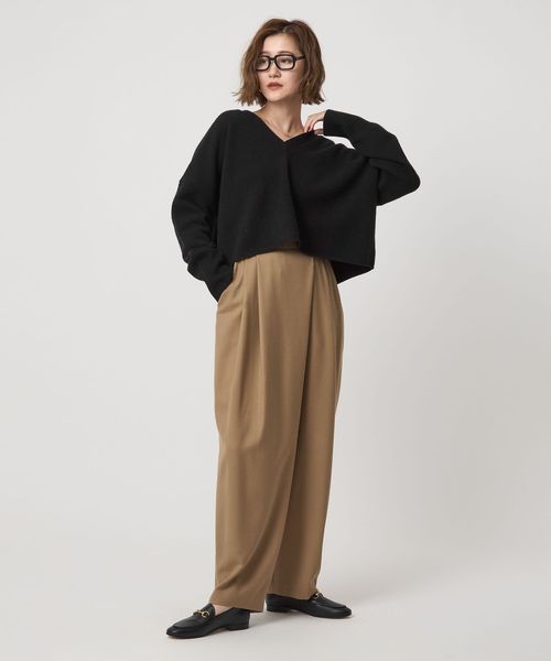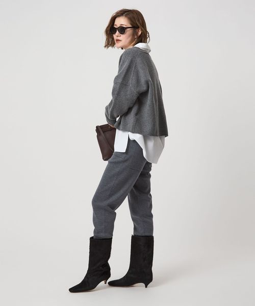 ゆったりとしたドロップショルダーニットの裾を短くしたようなすっきりとしたバランスの一枚です。