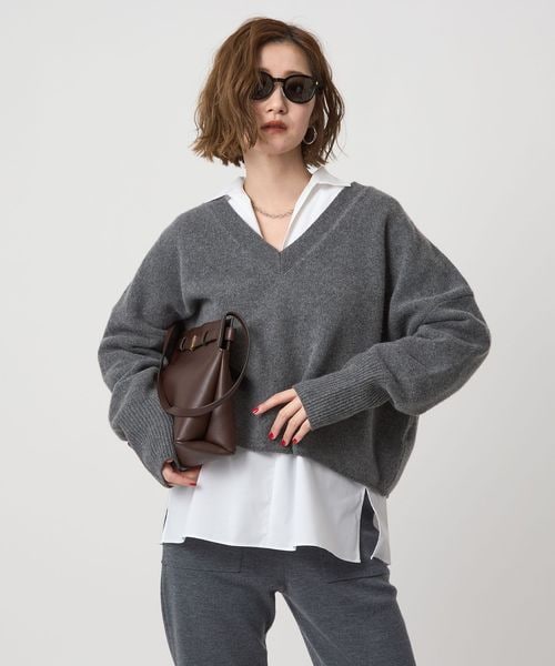 抜け感のあるゆったりとしたシルエットのVネックニット。