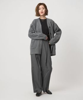 着こなしにアクセントを添えてくれるケーブル柄のカーディガン。