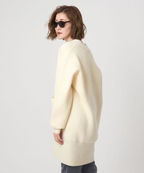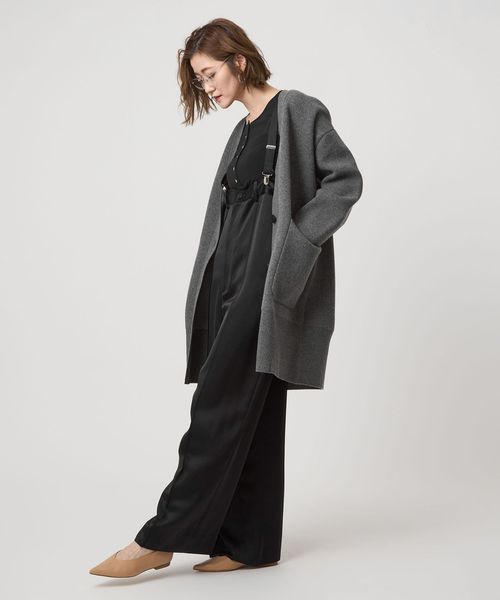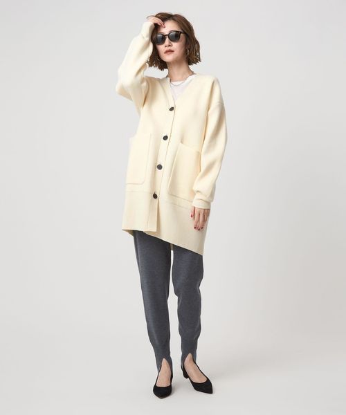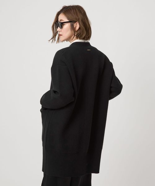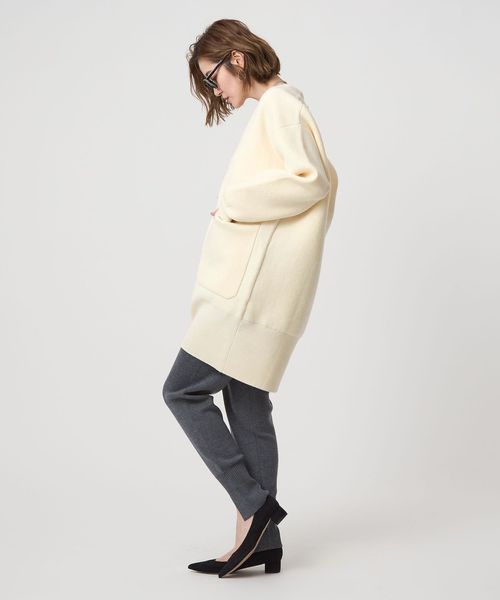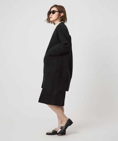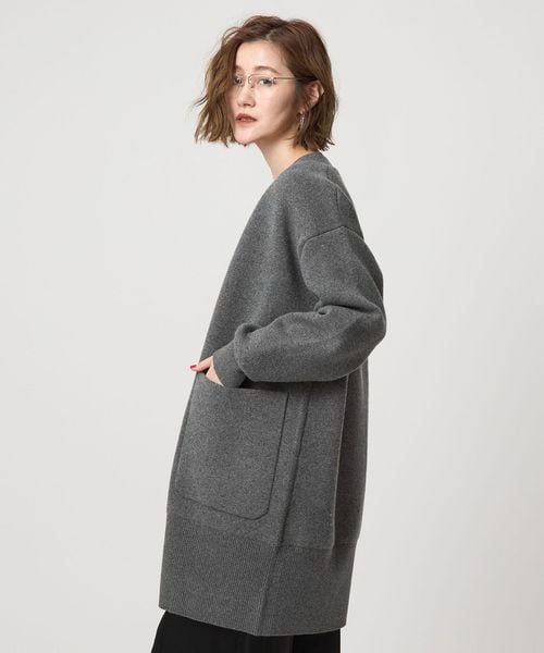コートのように羽織れる接結編みにしたロングカーディガン。