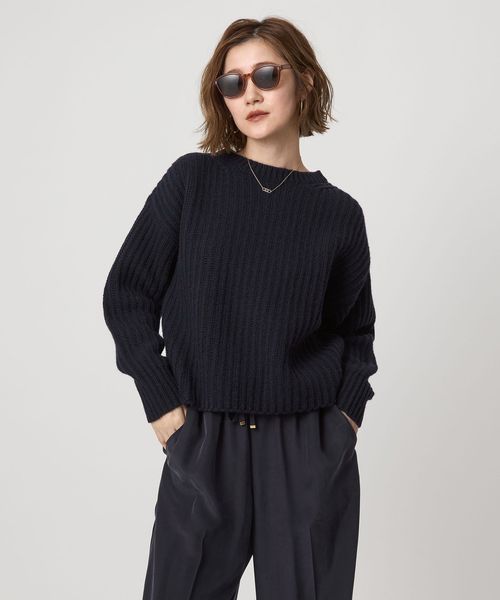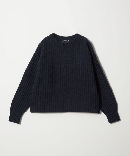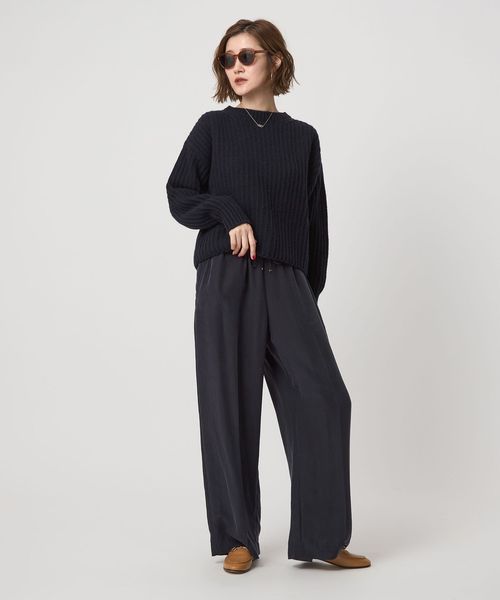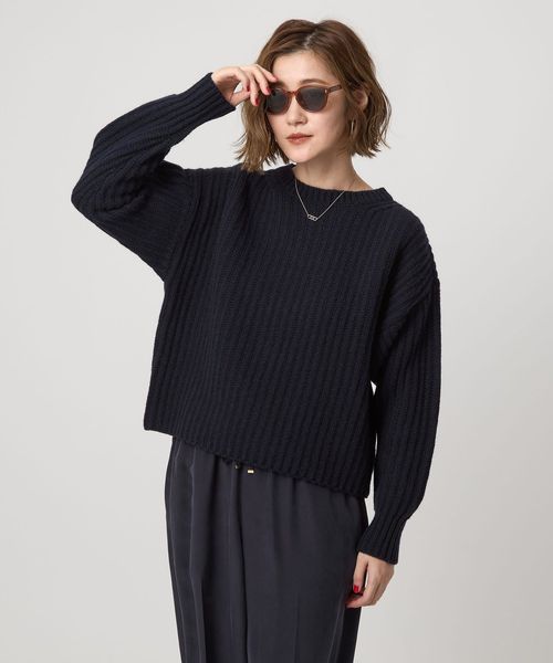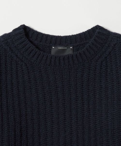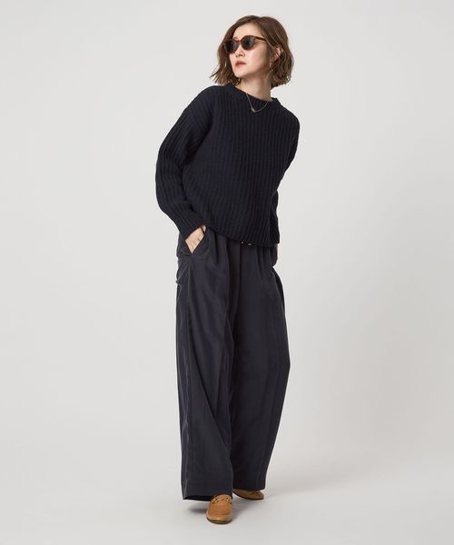凹凸感のある畦編みの表情が素敵なクルーネックニット。