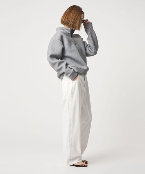 ご好評いただいているタックデニムパンツのタックをなくしてよりすっきりとしたデザイン。