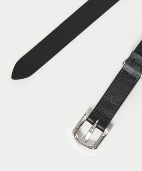 垂らして着こなしのアクセントになる細幅のロングベルト。