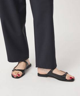 フラットサンダルにストラップのついたデザインが上品な印象の別注サンダル