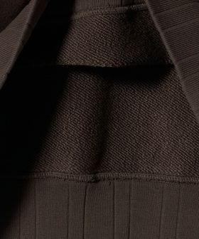 製品染め+洗い加工でつけたアタリや袖口や裾に使用したランダムピッチのフライスでヴィンテージライクな印象に仕上げました。