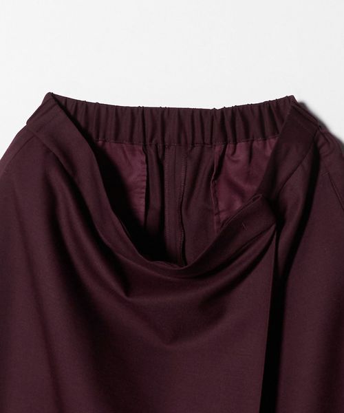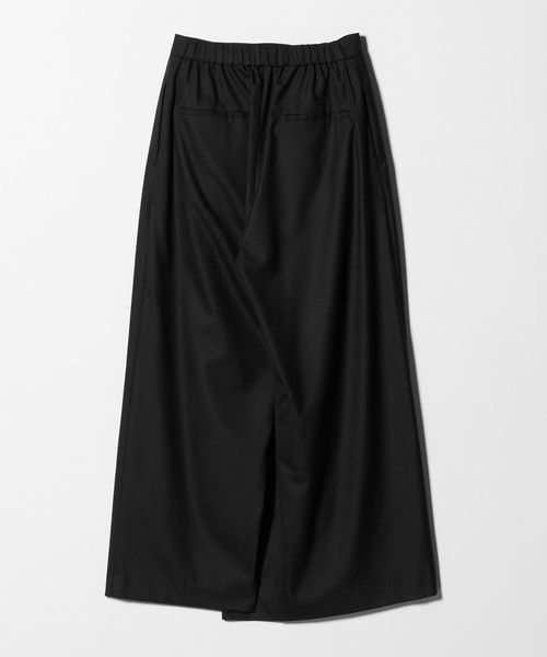 アシンメトリーのラップデザインで、後ろウエストゴム仕様ではきやすいワイドパンツ。