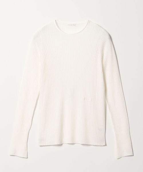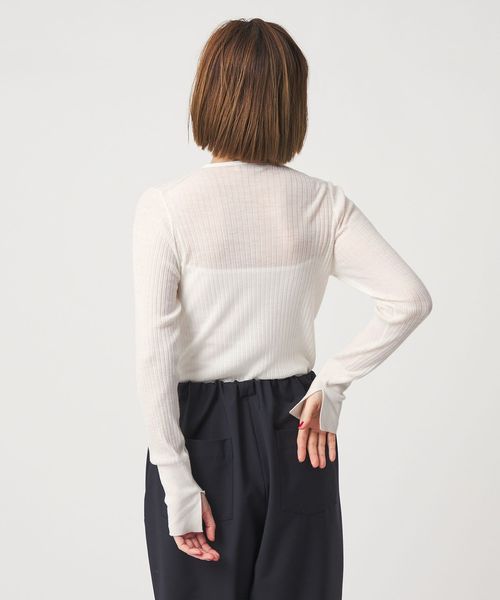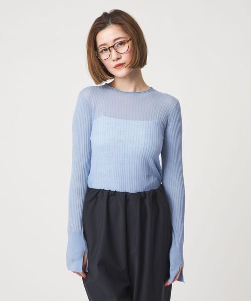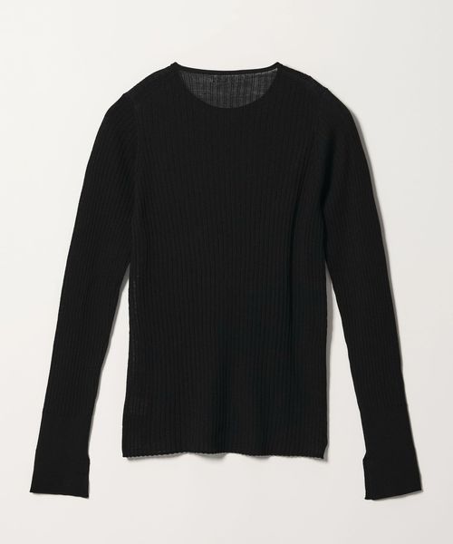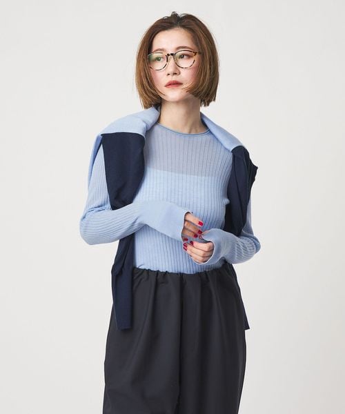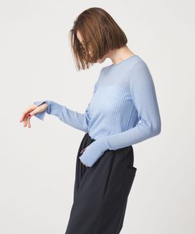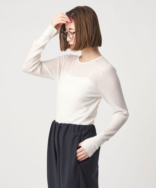 シンプルなデザインで様々な着こなしに取り入れやすいブランド定番のシアーリブニット。