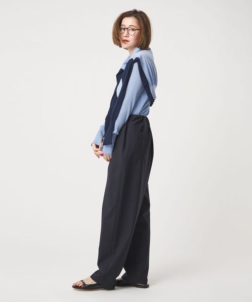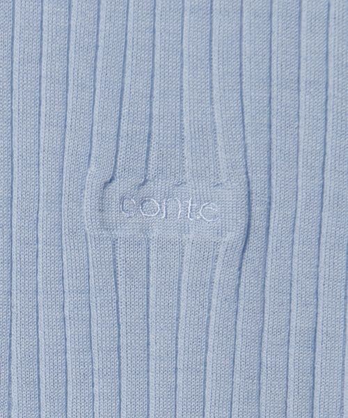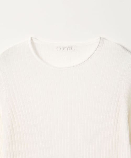 袖口のスリットデザインや同色の刺しゅうが特徴のクルーネックリブニット。