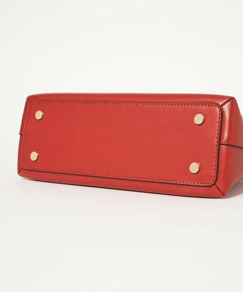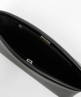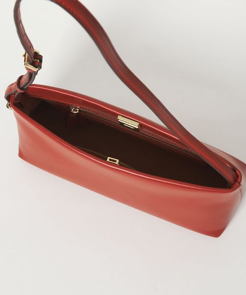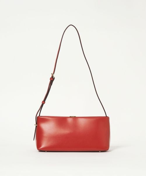 口元の留め金具がさりげないアクセントになっている横長フォルムのワンハンドルバッグ。