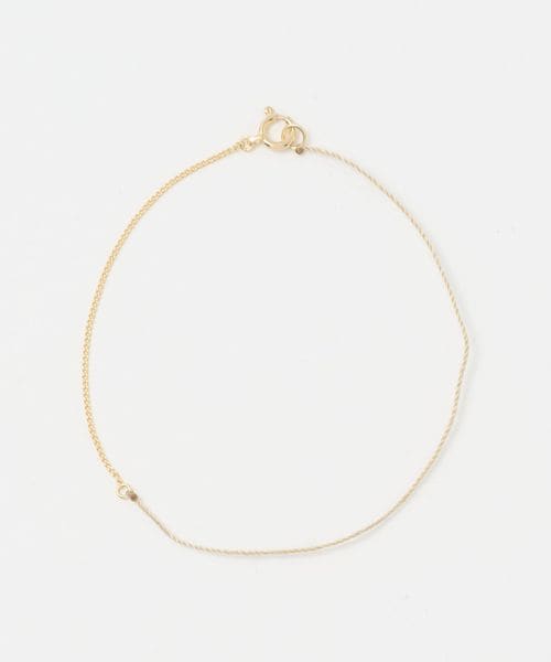 チェーンとベージュ紐の異素材コンビデザインのブレスレット。