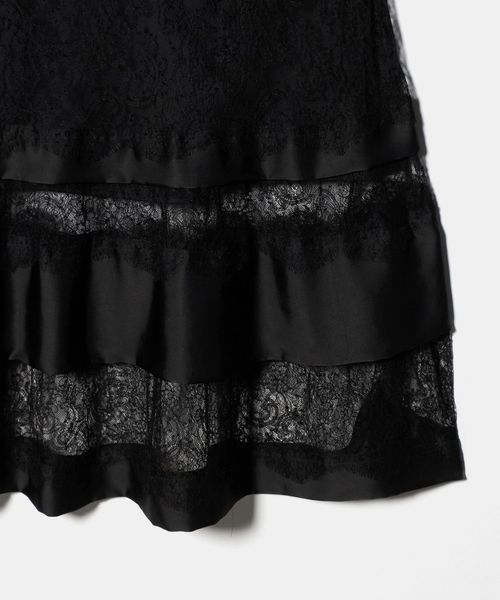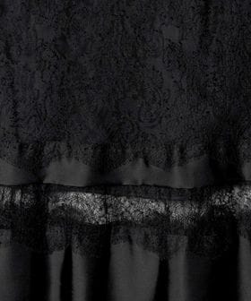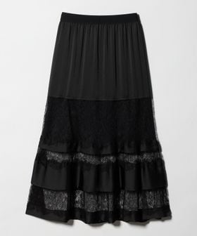 繊細なレースとサテン生地のコントラストをつけたAラインスカート。