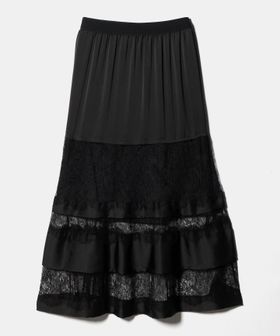レースとサテンのコンビデザインが着こなしの主役にぴったりのマキシ丈スカート。