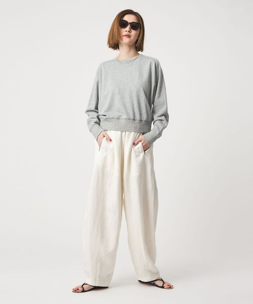 ゆったりとした身幅ながら着丈をコンパクトにしたシンプルなスウェット。