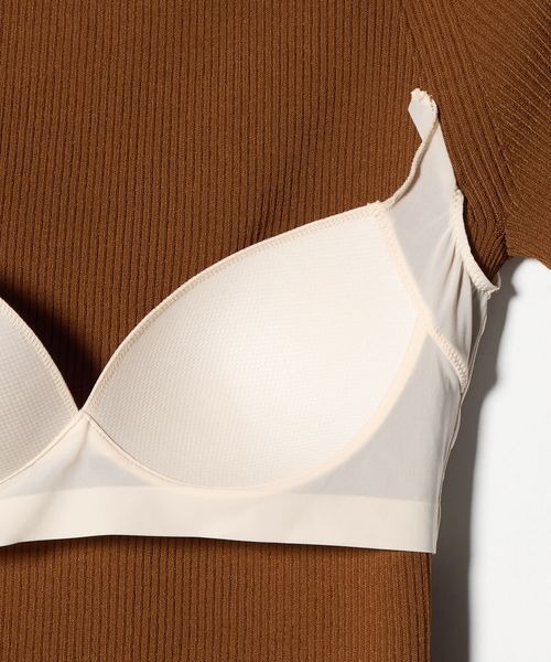 着心地や、女性を輝かせるデザイン性を持つニットウェアと、高度な技術力を持つ下着製造メーカーにより専用開発されたエアリーな着け心地のブラカップ。