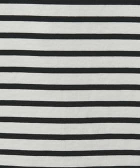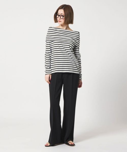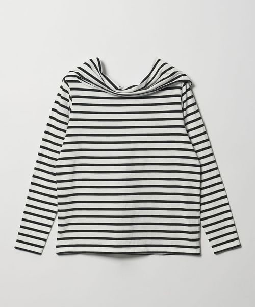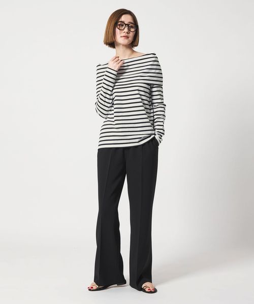 ボーダーと無地の2色展開でカジュアルな素材ながらもエレガントなシルエットに仕上げた一枚。