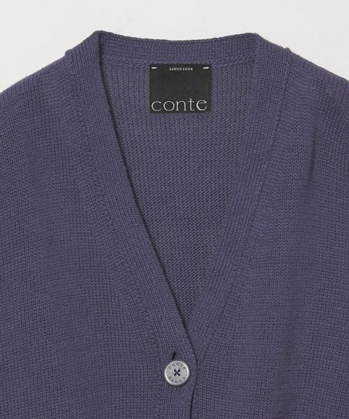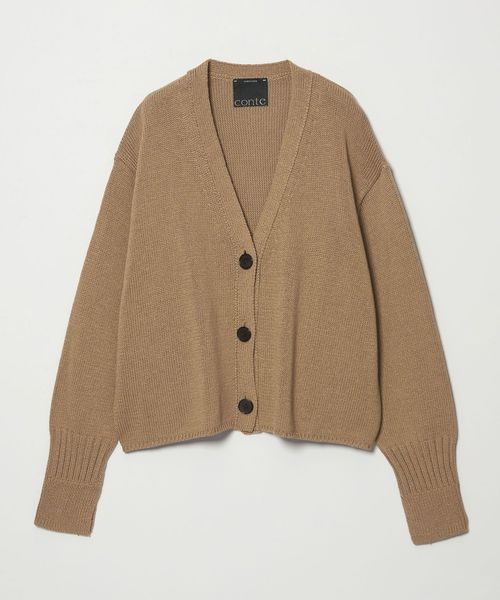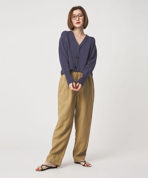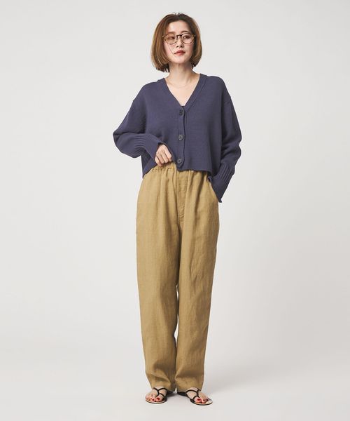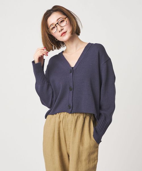 短めな着丈のカーディガンは肩にもかけやすい丈感です。