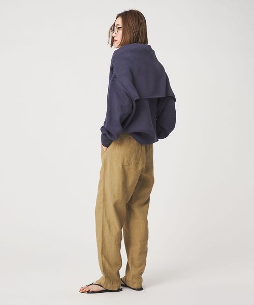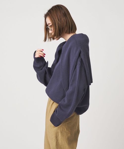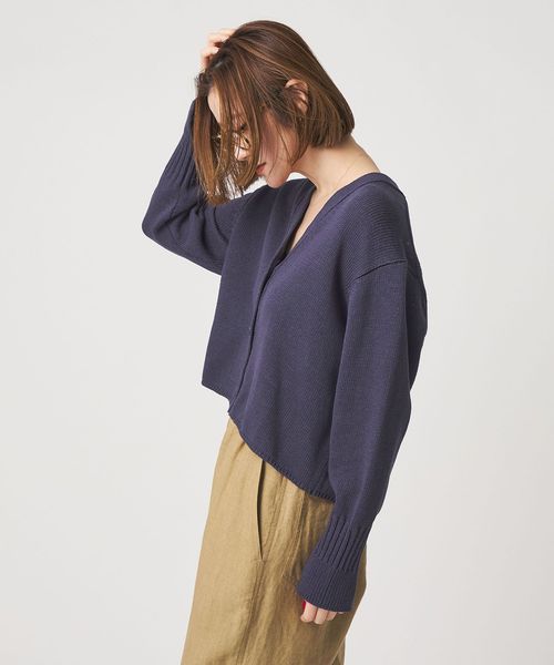裾をパツンと切ったようなすっきりとした着丈がポイントのローゲージニット。