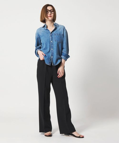 すっきりとしたストレートシルエットのきれいめイージーパンツ。