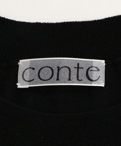 左前の腰あたりにあしらった<conte>ロゴ刺しゅうもさりげないデザインポイントです。