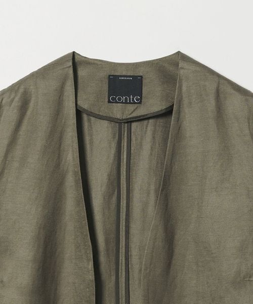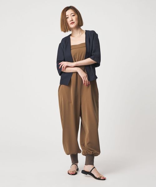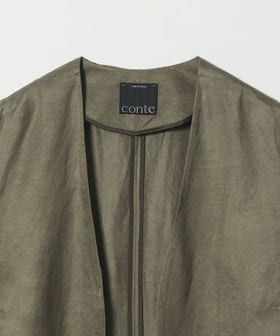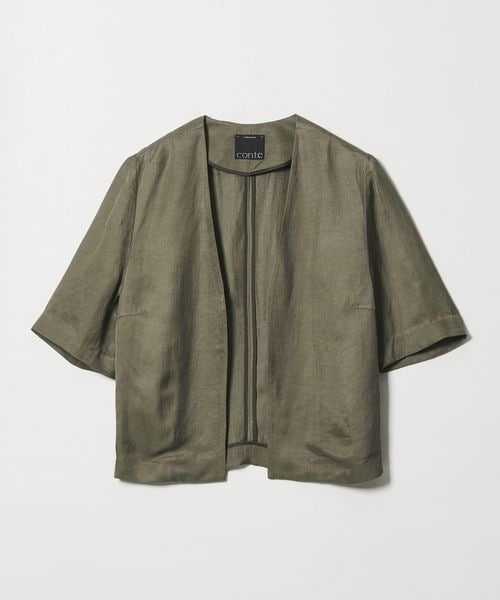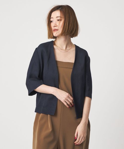 ボタンレスで程よく抜け感があり軽やかに羽織れる5分袖ノーカラージャケット。