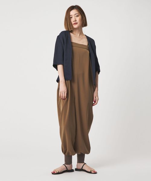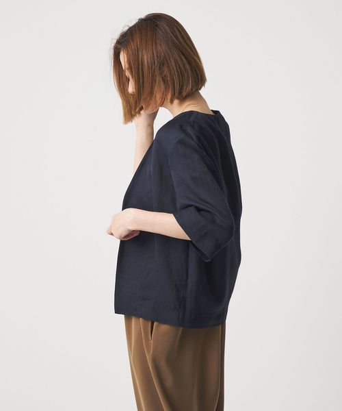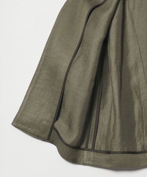 レーヨンの光沢と落ち感に麻のスラブと張り感をあわせたエレガントすぎない素材です。