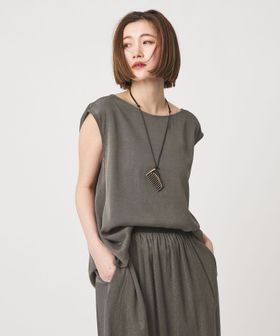 ゆとりのあるシルエットで自然とうまれるドレープが上品なノースリーブブラウス。
