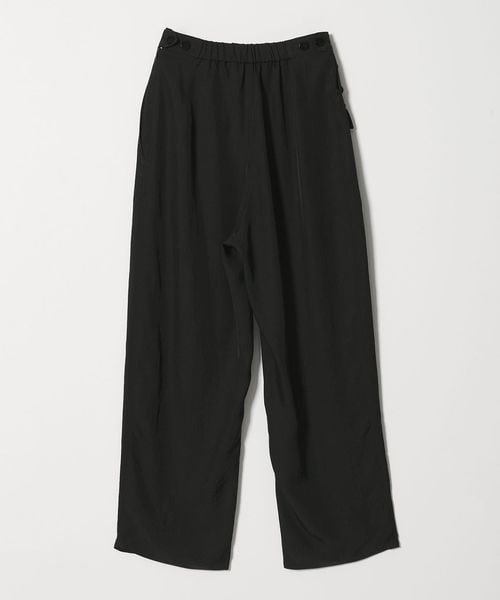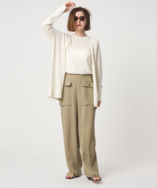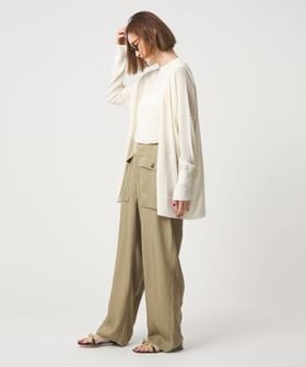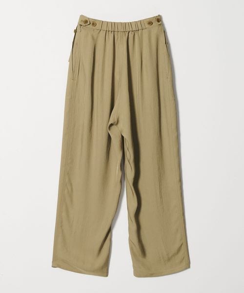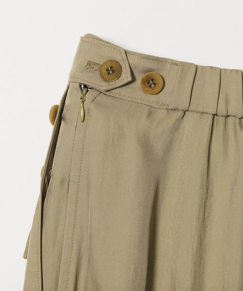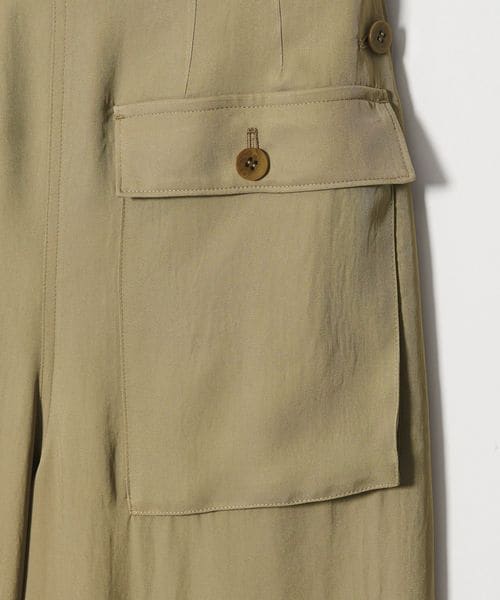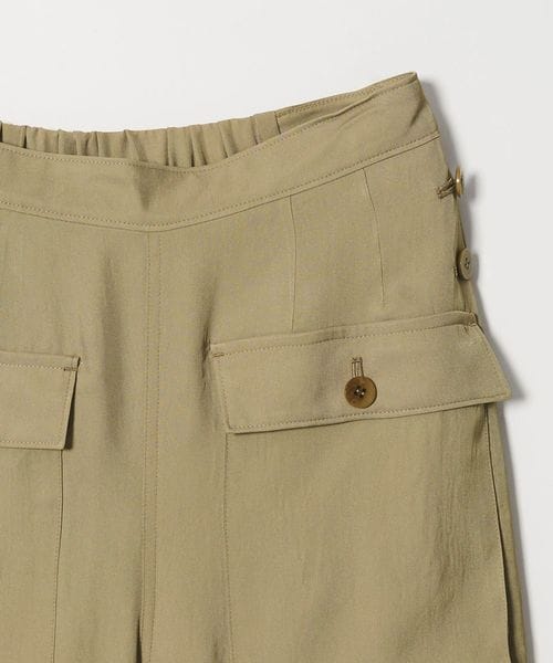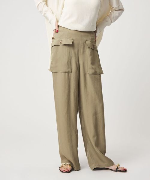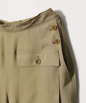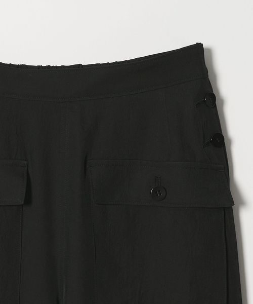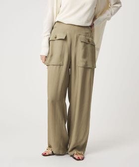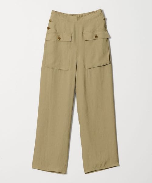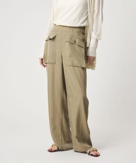 無骨なミリタリーパンツに光沢感のある素材を用いてきれいめアイテムともあわせやすく仕上げた一枚。