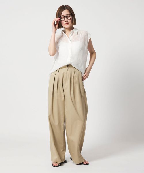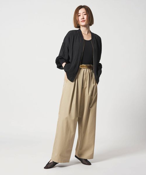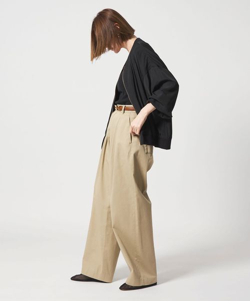 カジュアルな素材感ですがきれいめシルエットで幅広い着こなしに活躍する一枚。
