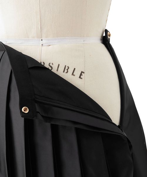 ベーシックなプリーツとは異なるモードなニュアンスがあるロング丈のスカート。
