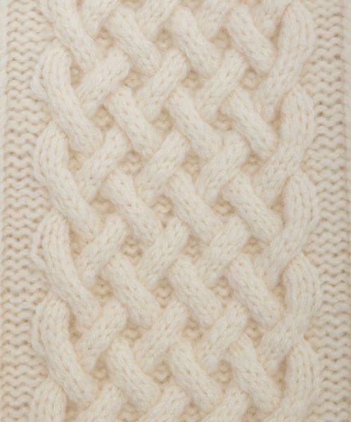 伝統的なアラン編みが上品に映えるクルーネックニット。