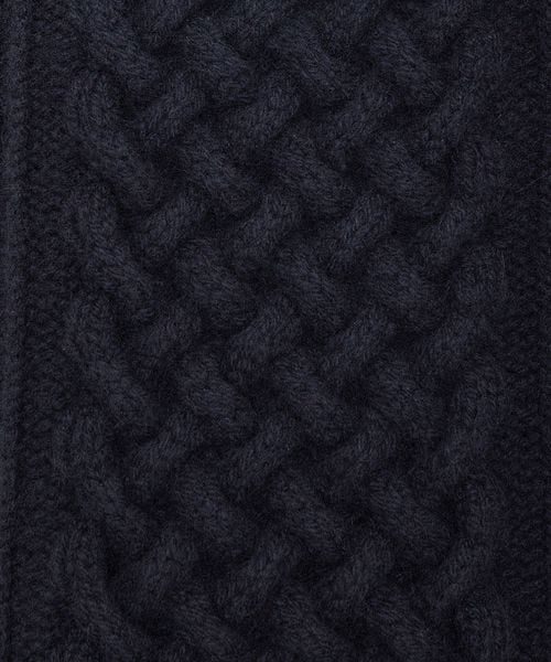 ウールカシミヤ糸を使用して編み立てたケーブル編みのニット地。