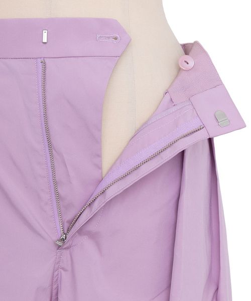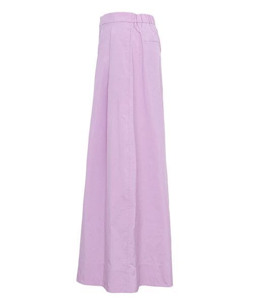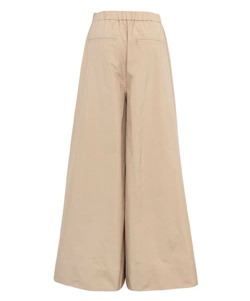 フロントにプリーツのようなタックを入れたロングスカートのような雰囲気のあるワイドパンツ。