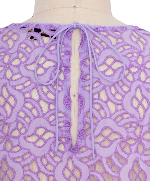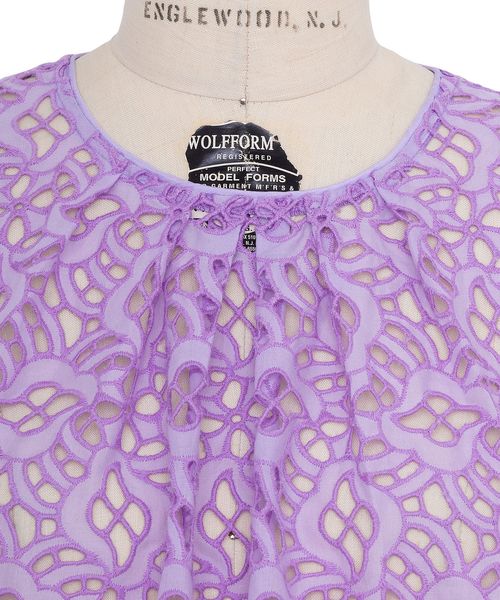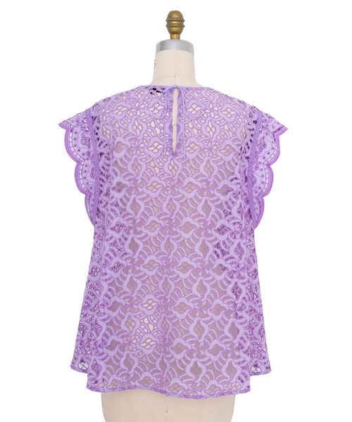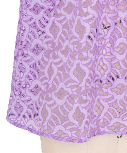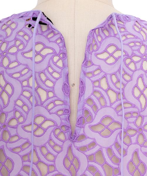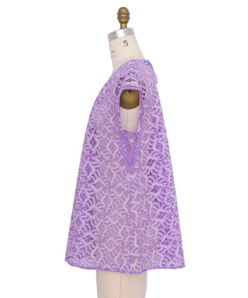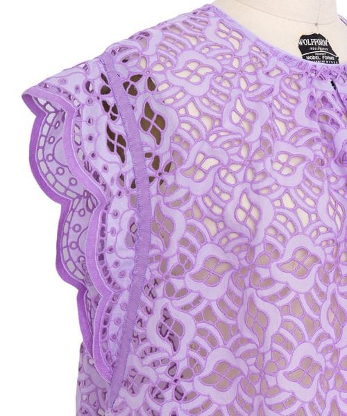 スリーブのスカラップレースが華やかな雰囲気をプラスするブラウス。