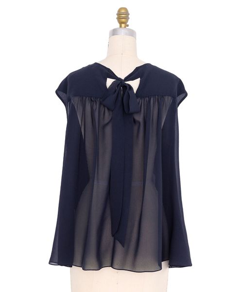 シアーなシフォン素材が優雅に揺れるバックリボンブラウス