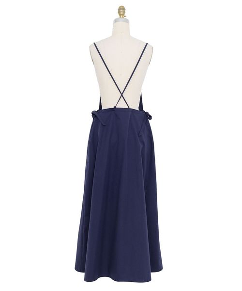 ディティールを削ぎ落としたフォルムラインにサイドのリボンがアクセントになったストラップワンピース。