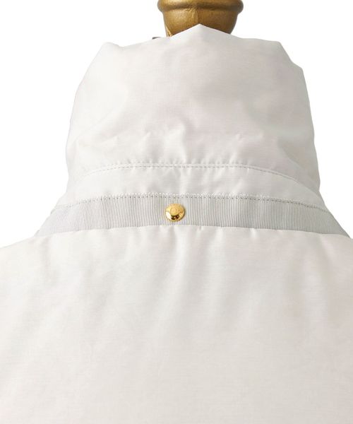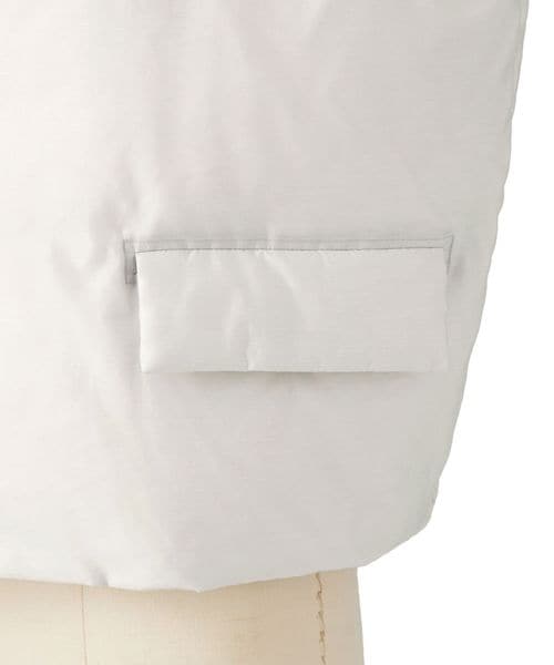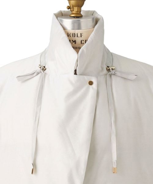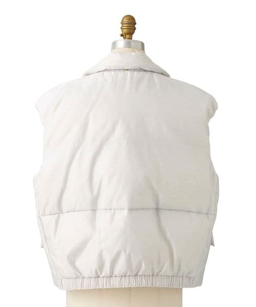 襟もとのドローコードをギャザリングし、スタイリングの変化が楽しめるダウンベスト。