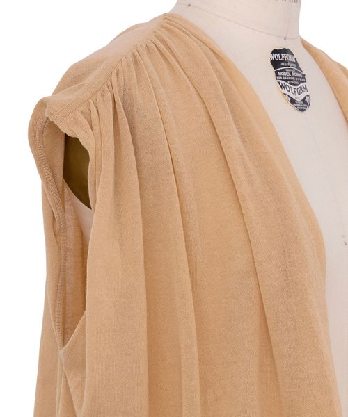 シアーなニット素材が重なった表情が美しいノースリーブカーディガン