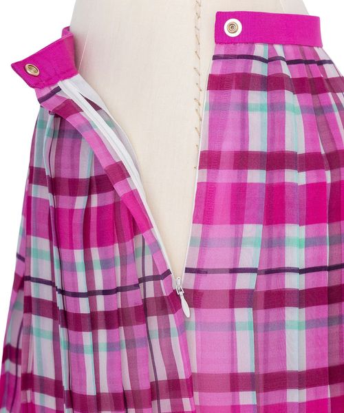 チェック柄を美しく見せるようデザインした、すっきりめなプリーツが美しく映えるスカート。