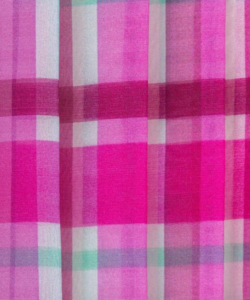 透け感とハリのあるシルクオーガンジーにオリジナルチェックをプリントした生地。
