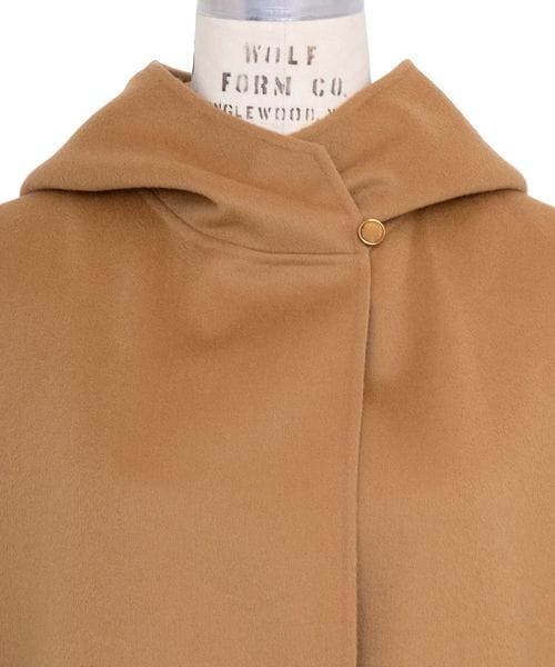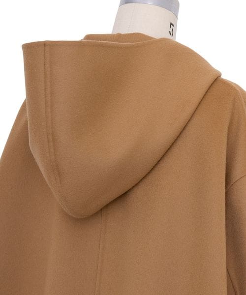 前を開けて羽織るとフードが優しくエレガントなニュアンスを生むロングコート。