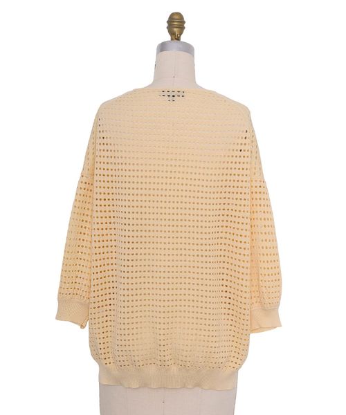 透けのあるドット状のアイレットの編み地は幅広いシーズンにスタイリングできます。