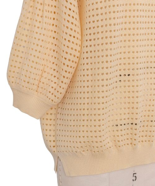 ドット状のアイレットの編み地が特徴のショートスリーブニット