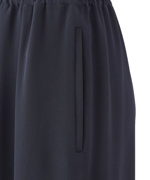 ややワイドなシルエットは体のラインを拾いにくく美しいドレープが生まれます。上品な素材感でオンオフどちらのスタイリングも楽しめます。